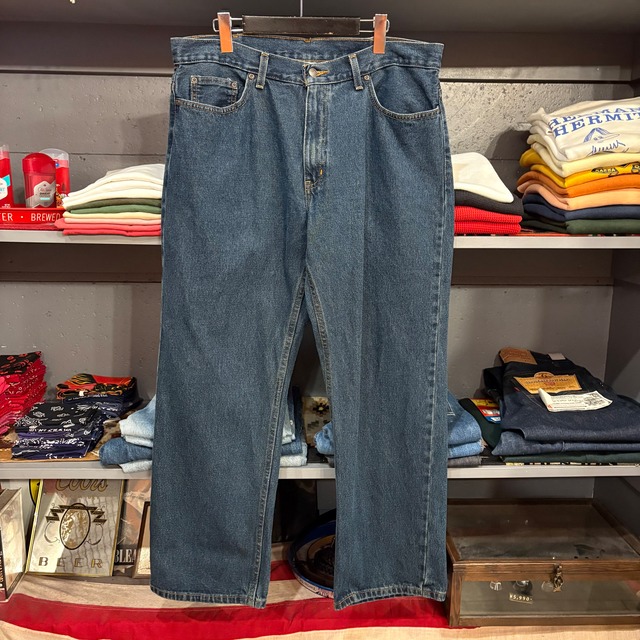 1990年代 リーバイス Tシャツ 501プリント 恐らくスクリーンスターズボディー 肩、裾:シングルステッチ 袖:ダブルステッチ 右袖糸抜け痕あり フェード アメリカ製 コットン:50% ポリエステル:50% カラー:ブラック サイズ表記:XL 実寸(約cm) 肩幅:52 身幅:60 袖丈:25 着丈:72 B9974