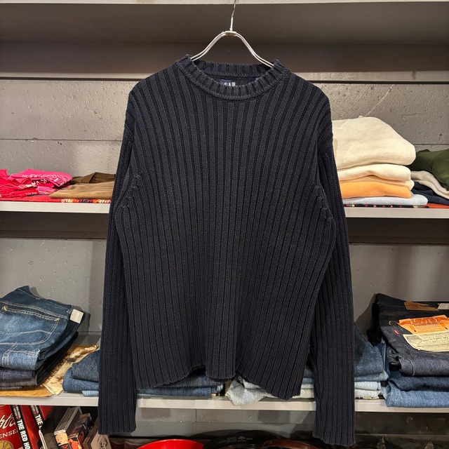 1990年代 オービス ニットセーター 身幅広めのボックスシルエット コットン: 100% カラー:ネイビー サイズ表記: M 実寸(約cm) 肩幅:48 身幅:56 袖丈:56 着丈:58 B1569