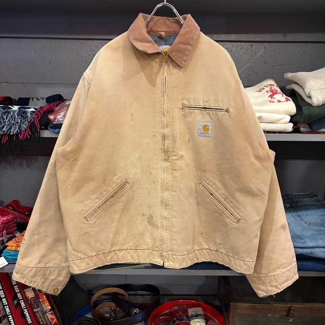 1990年代 カーハート デトロイトジャケット ダックジャケット ブランケットライナー 全体的に汚れ 袖リブにダメージあり アメリカ製 コットン100% カラー:ベージュ サイズ表記:50 TALL 実寸(約cm) 肩幅:55.5 身幅:70 袖丈:65 着丈:70 B1151