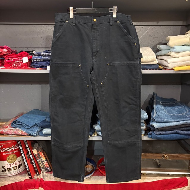 カーハート ダブルニーペインターパンツ ダック地 フェード ダメージあり 股、右バックポケット辺りにリペアあり アメリカ製 コットン:100% カラー:ブラック サイズ表記:W38L34 実寸(約cm) ウエスト:92 レングス:79 股上:33 わたり幅:34 裾幅:24 B1226