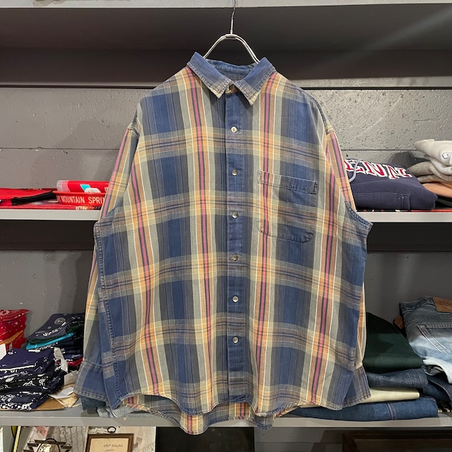 1990年代 バナナリパブリック バナリパ ロングスリーブシャツ マドラスチェック柄 ラウンドシルエット コットン100% カラー:マルチ サイズ表記:L 実寸(約cm) 肩幅:50 身幅:64 袖丈:56 着丈:73 B1749