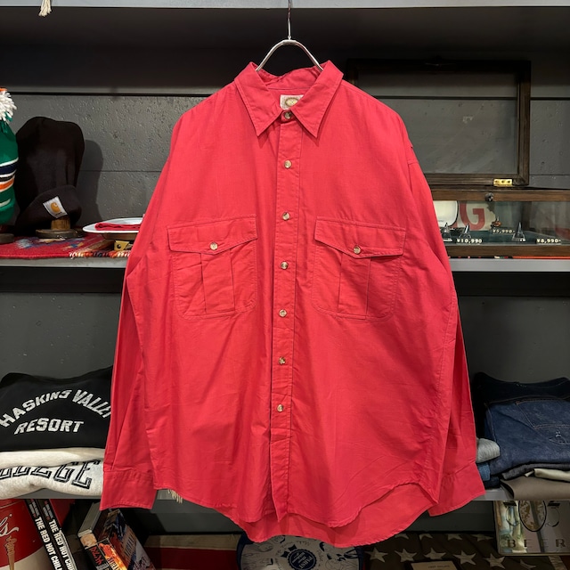 1980年代 バナナリパブリック バナリパ ロングスリーブシャツ デッドストック 左袖汚れあり インド製 コットン100% カラー:レッド サイズ表記:M 実寸(約cm) 肩幅:55 身幅:65 袖丈:64 着丈:83 B6776