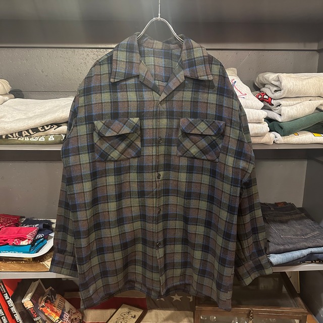 70s Pendleton L/S Open Collar Wool Shirt USA製