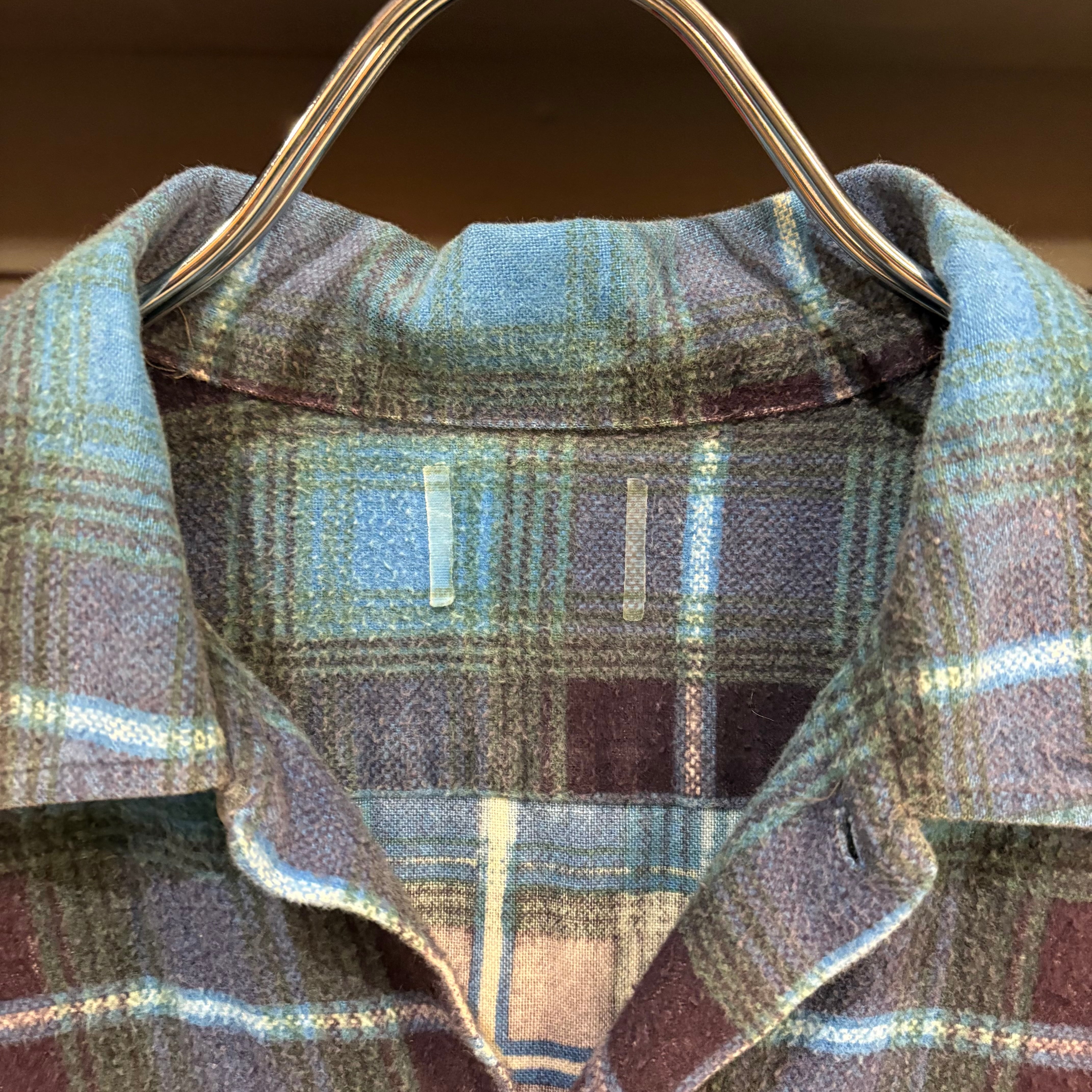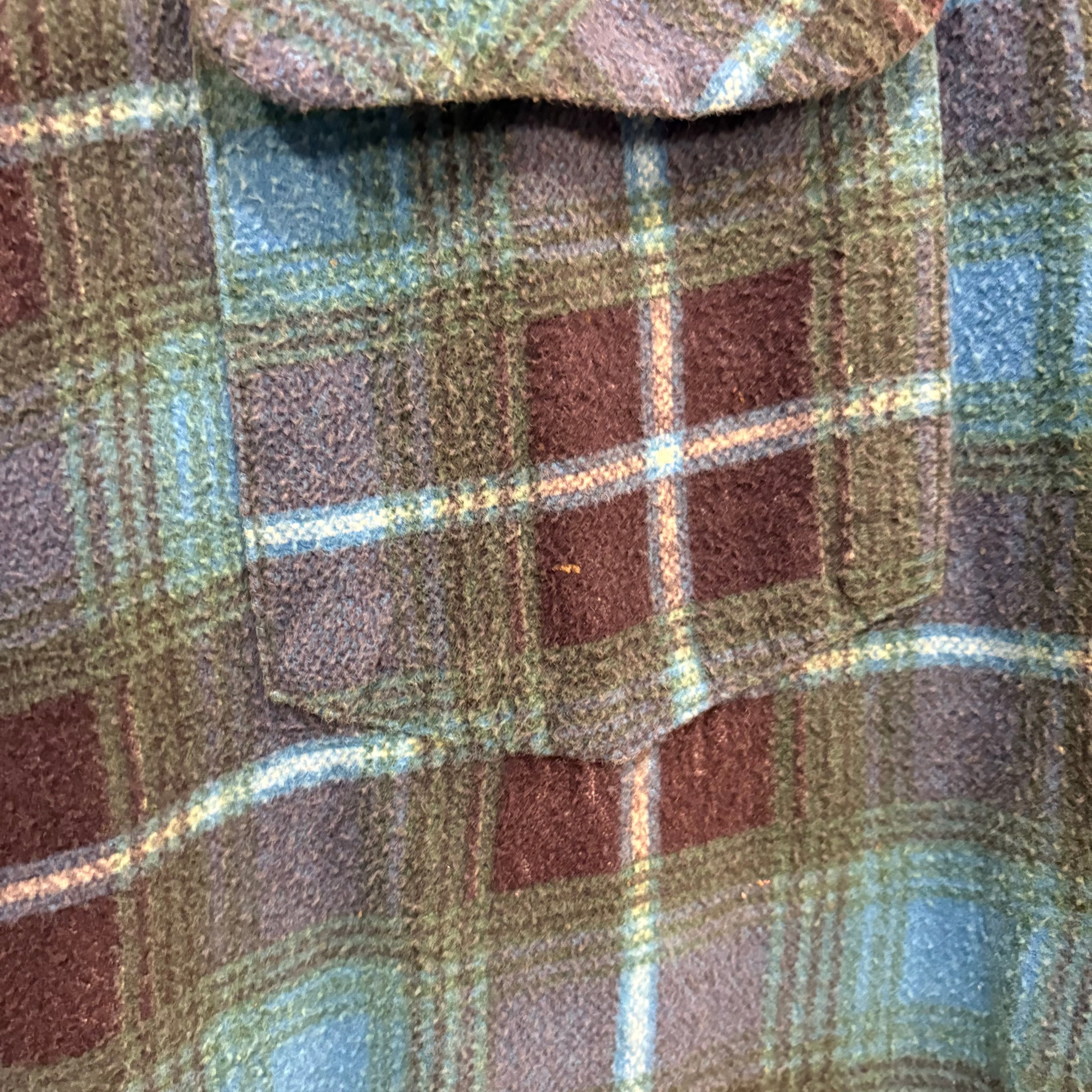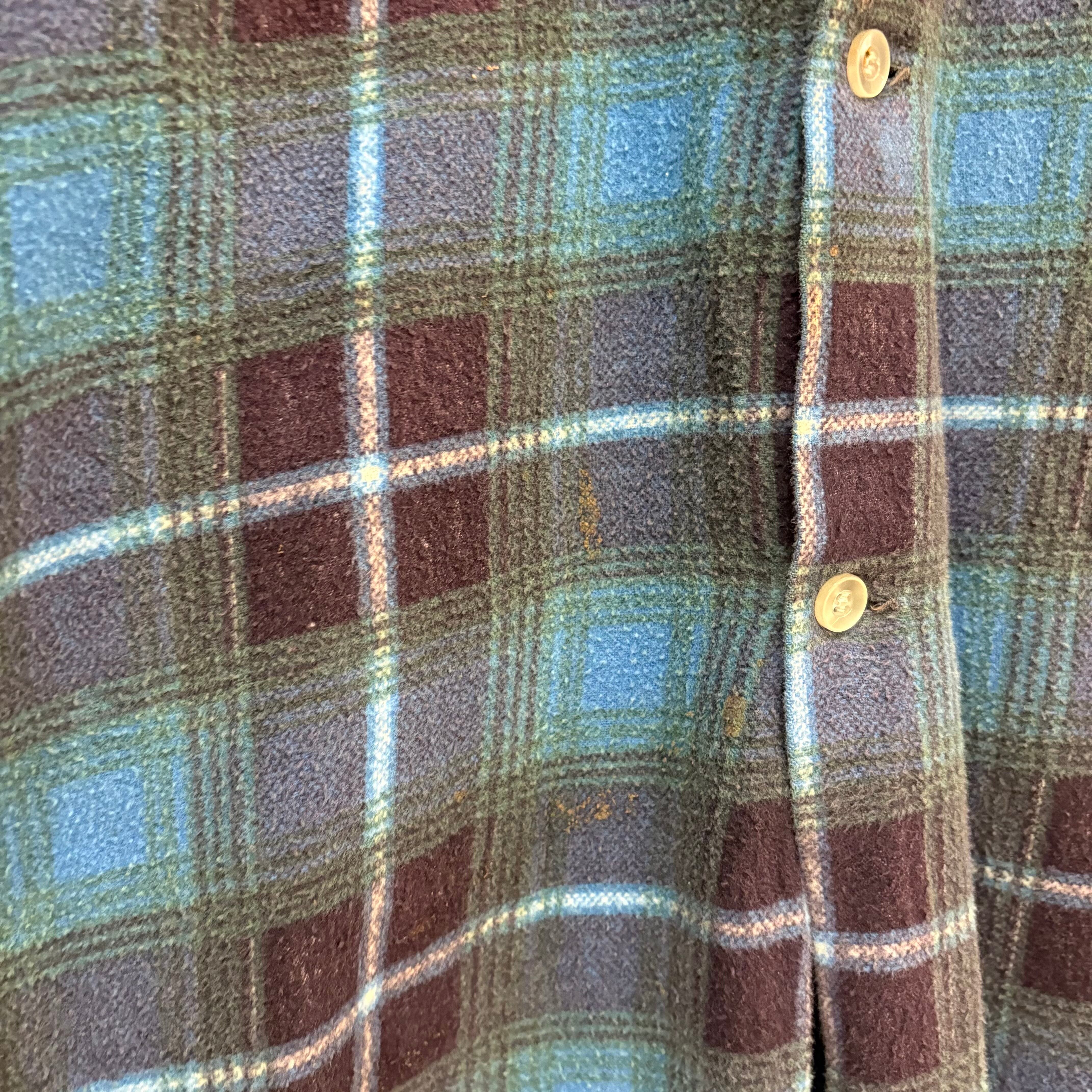 60-70s L/S Ombre Plaid Print Flannel Shirt