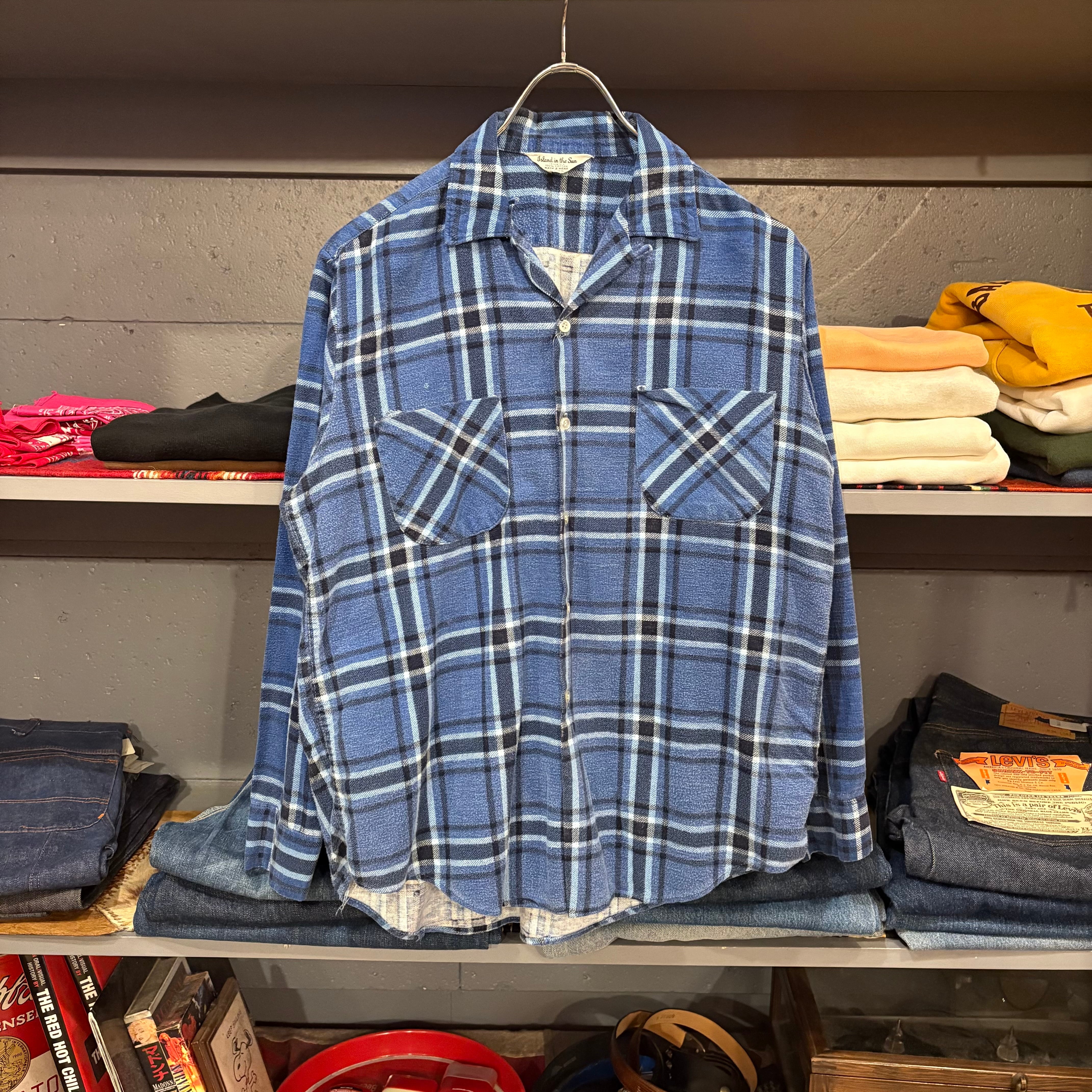 60s Island in the Sun L/S Open Collar Print Flannel Shirt
