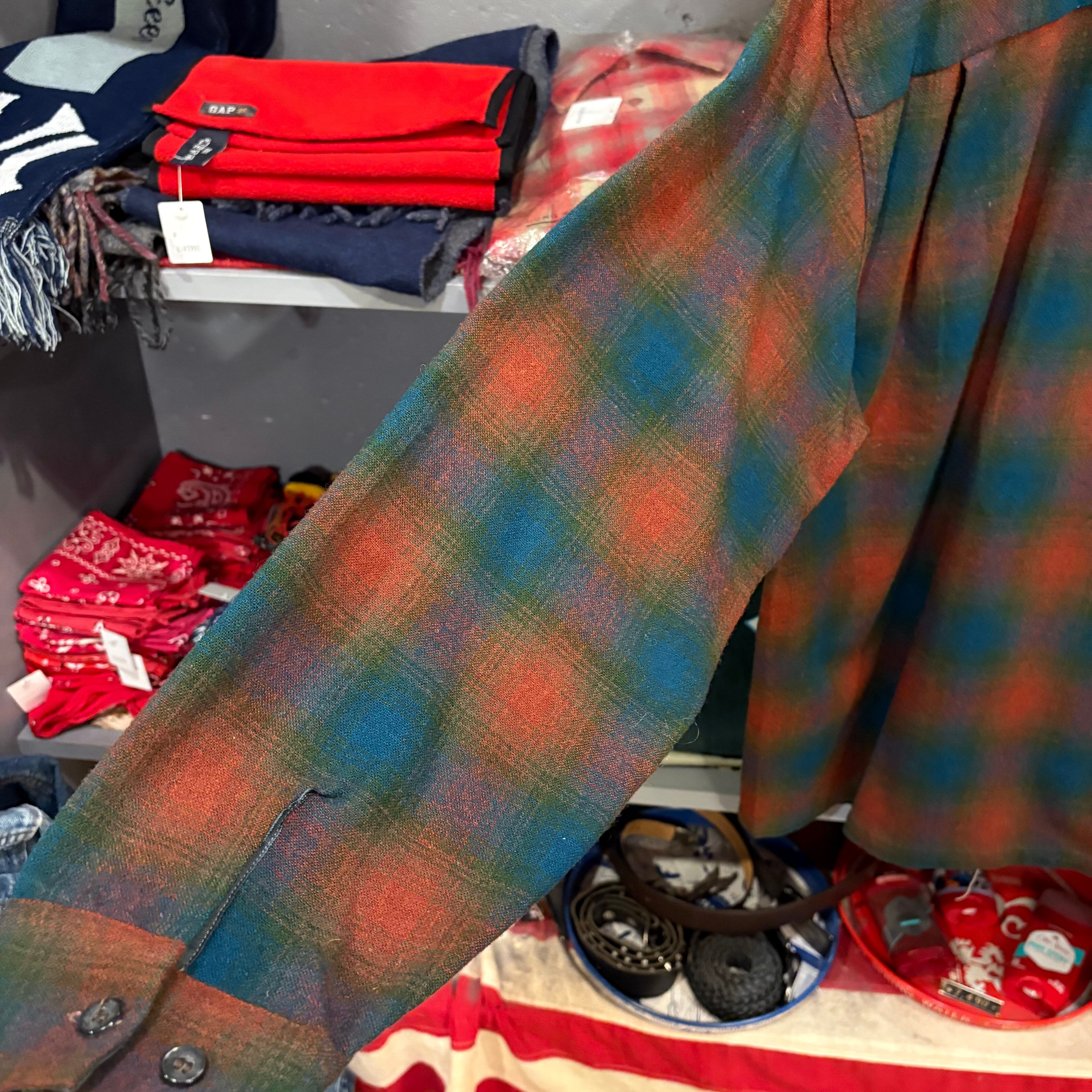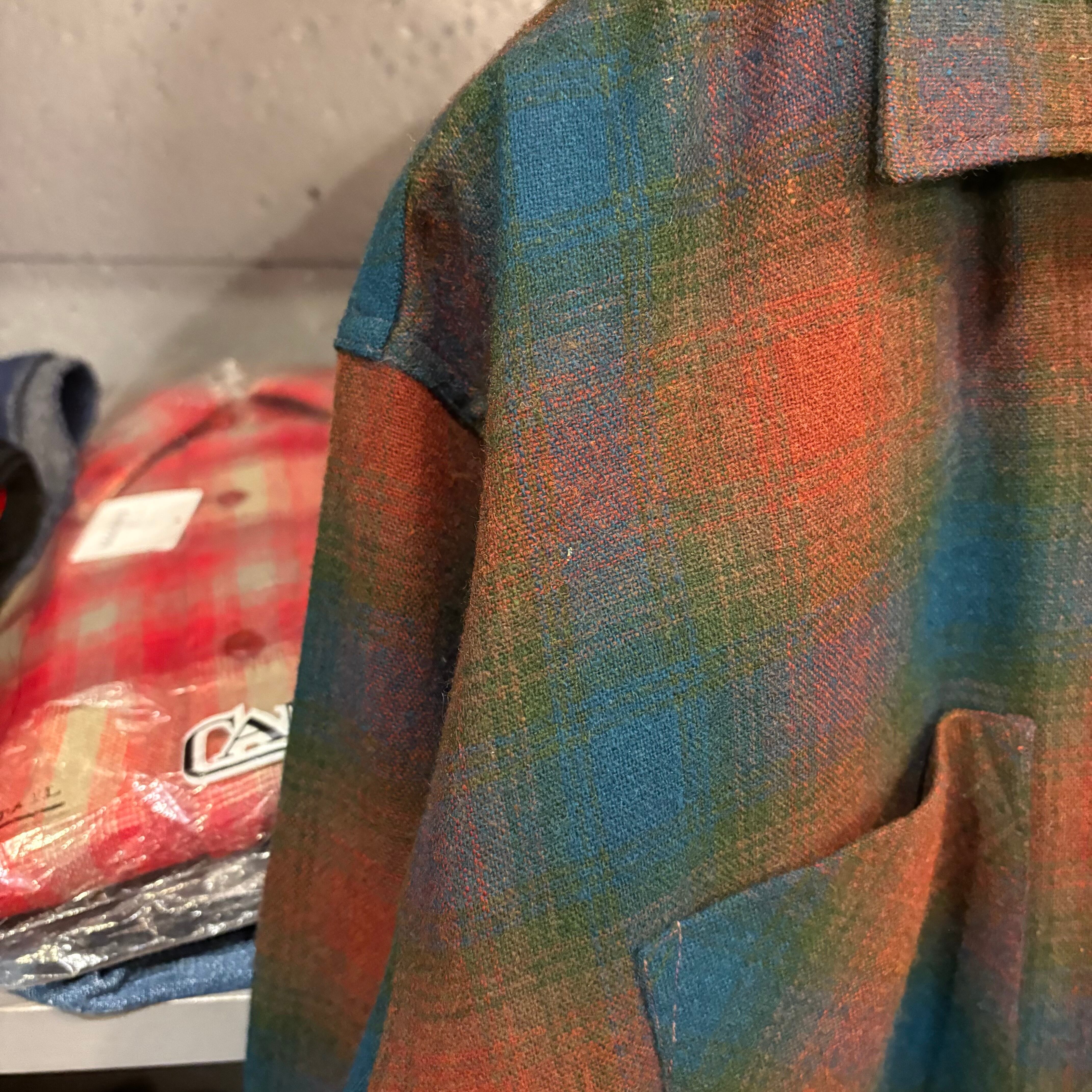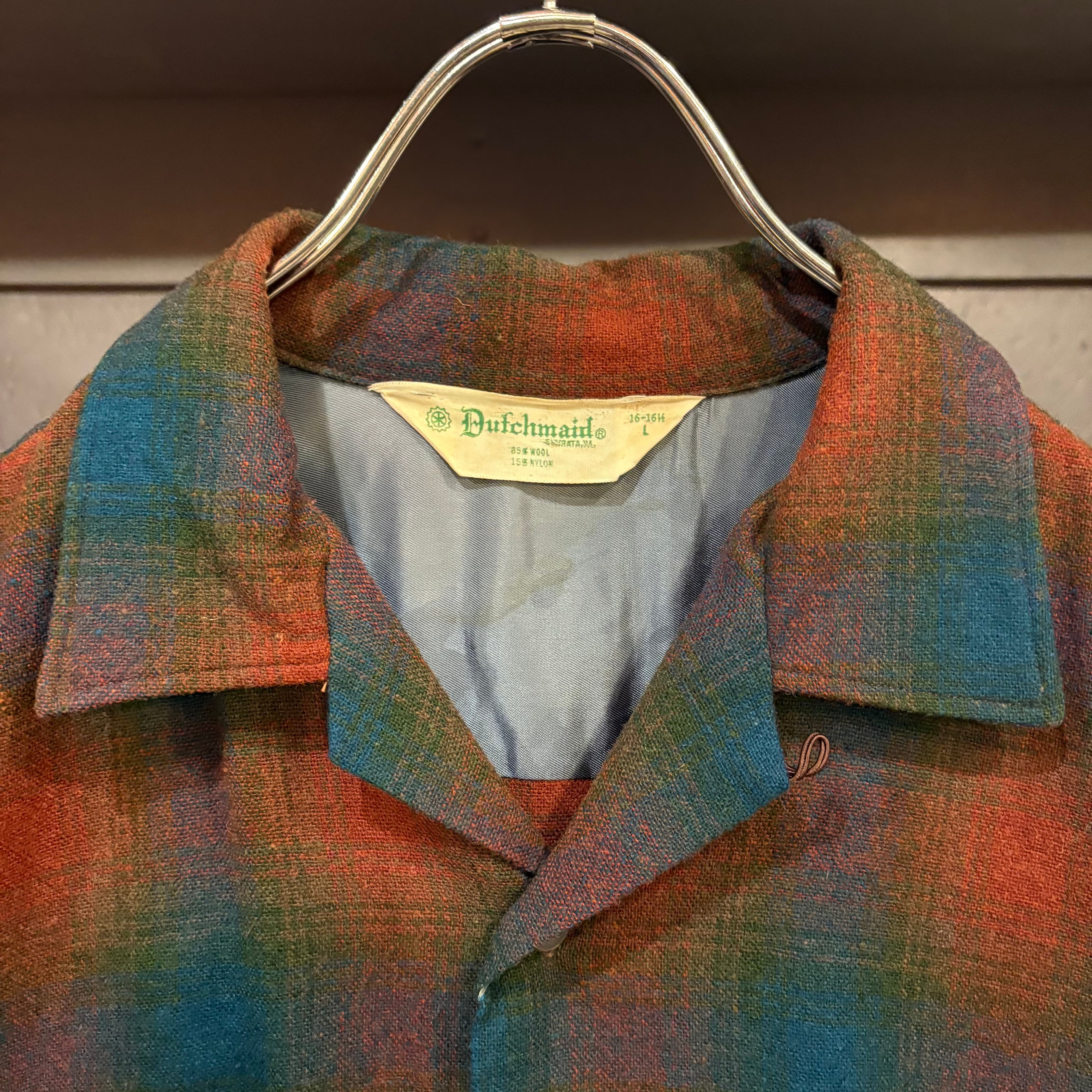 60s Dufchmaid L/S Ombre Plaid Wool Open Collar Shirt