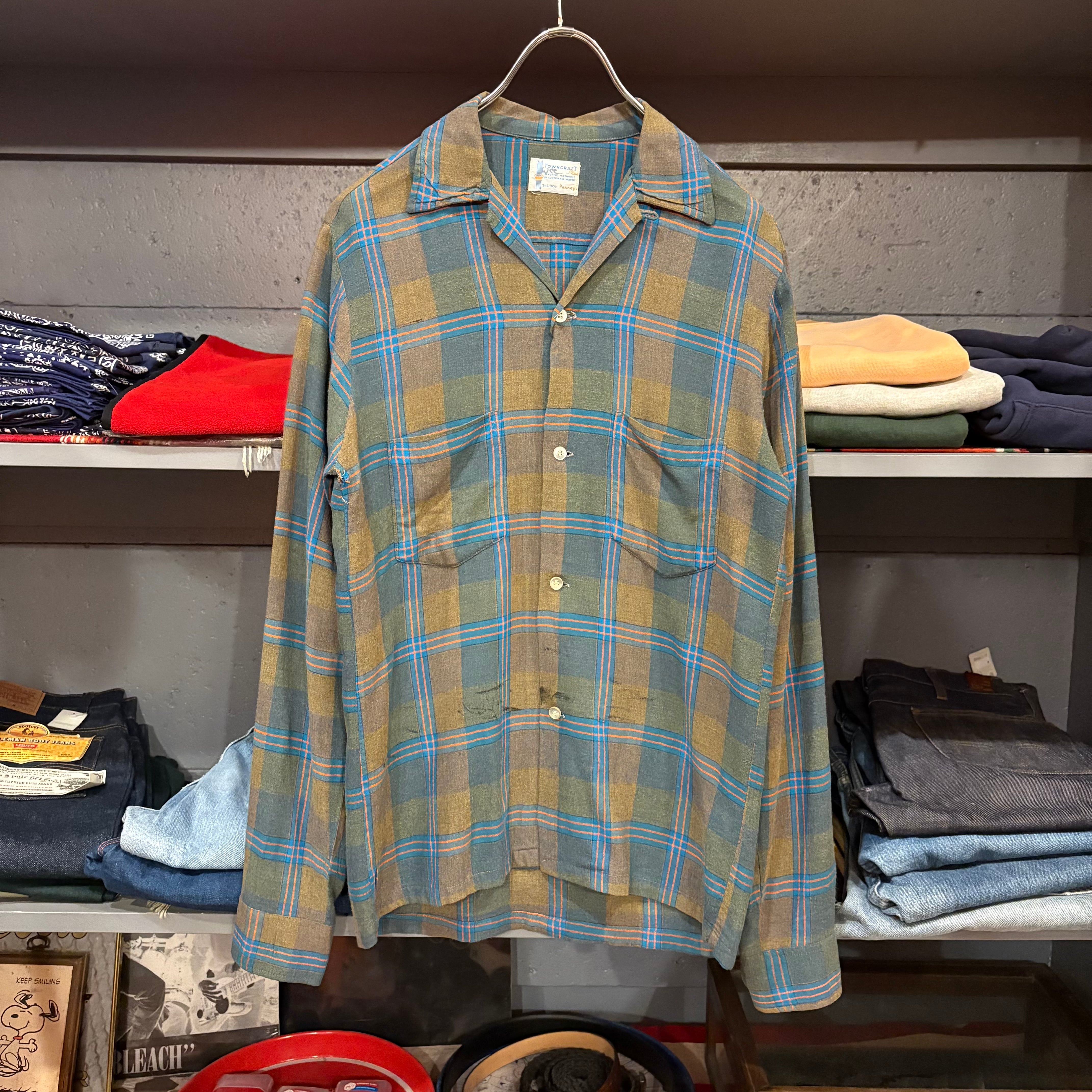 60s TOWNCRAFT L/S Open Collar Rayon Shirt