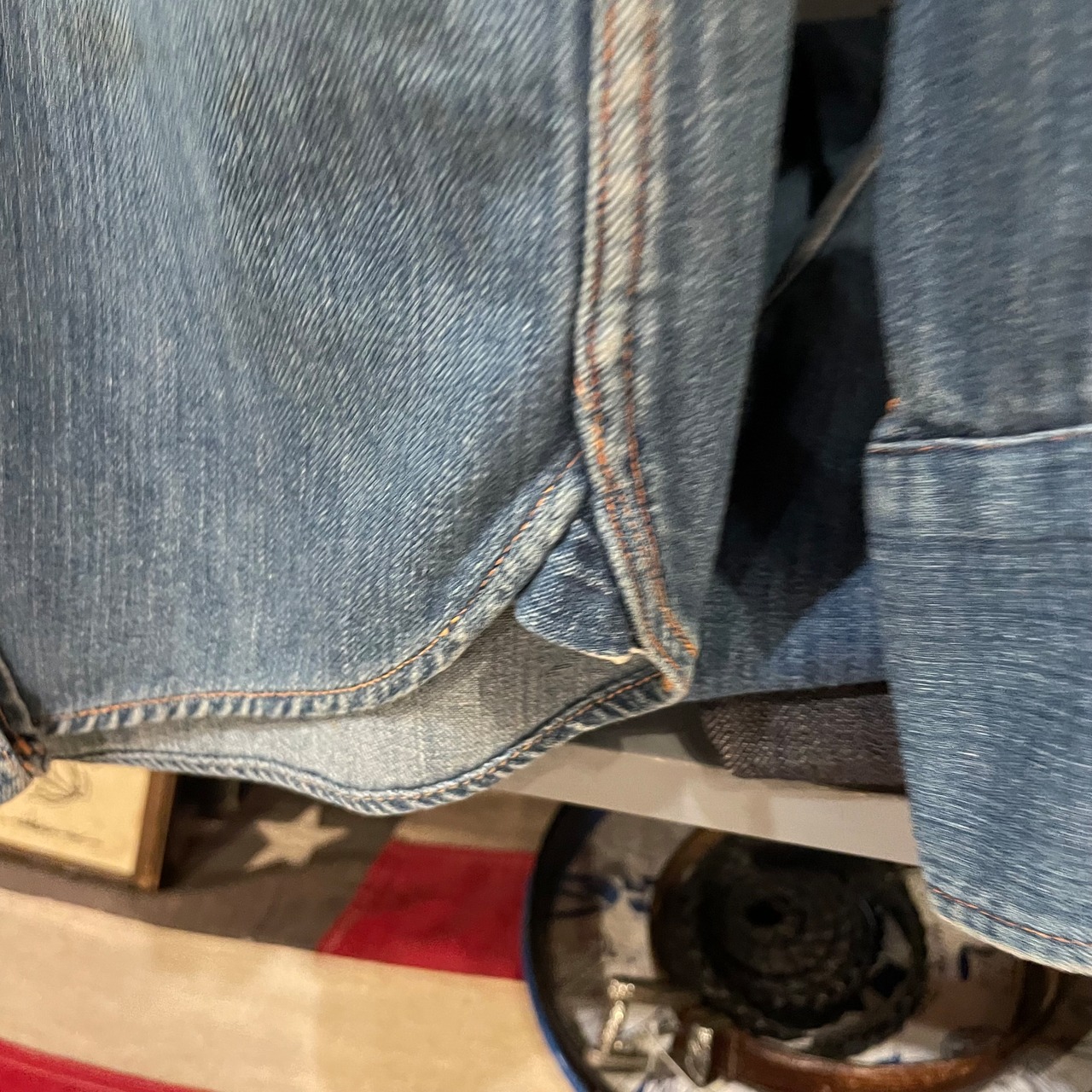 ヨーク部分のステッチほつれあり