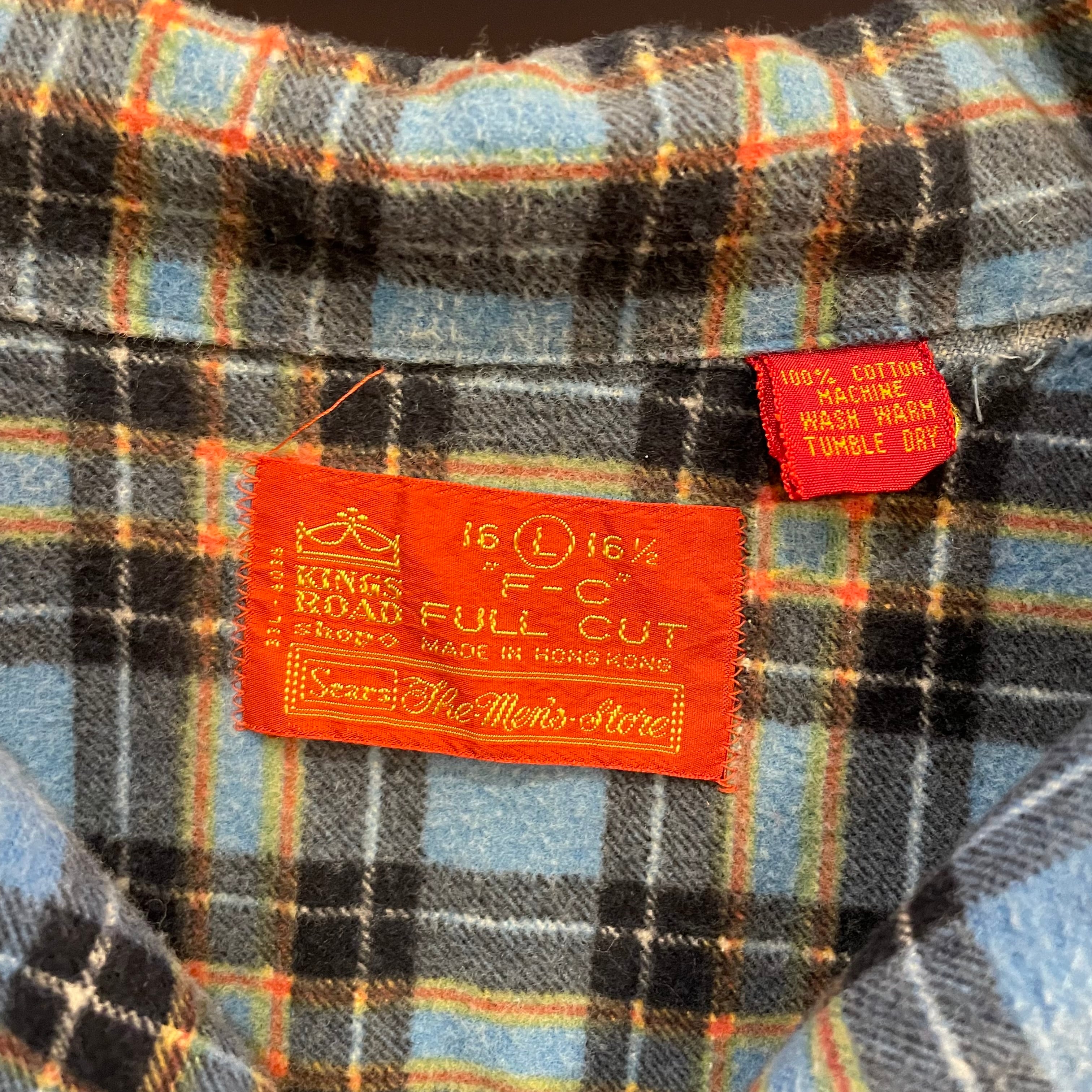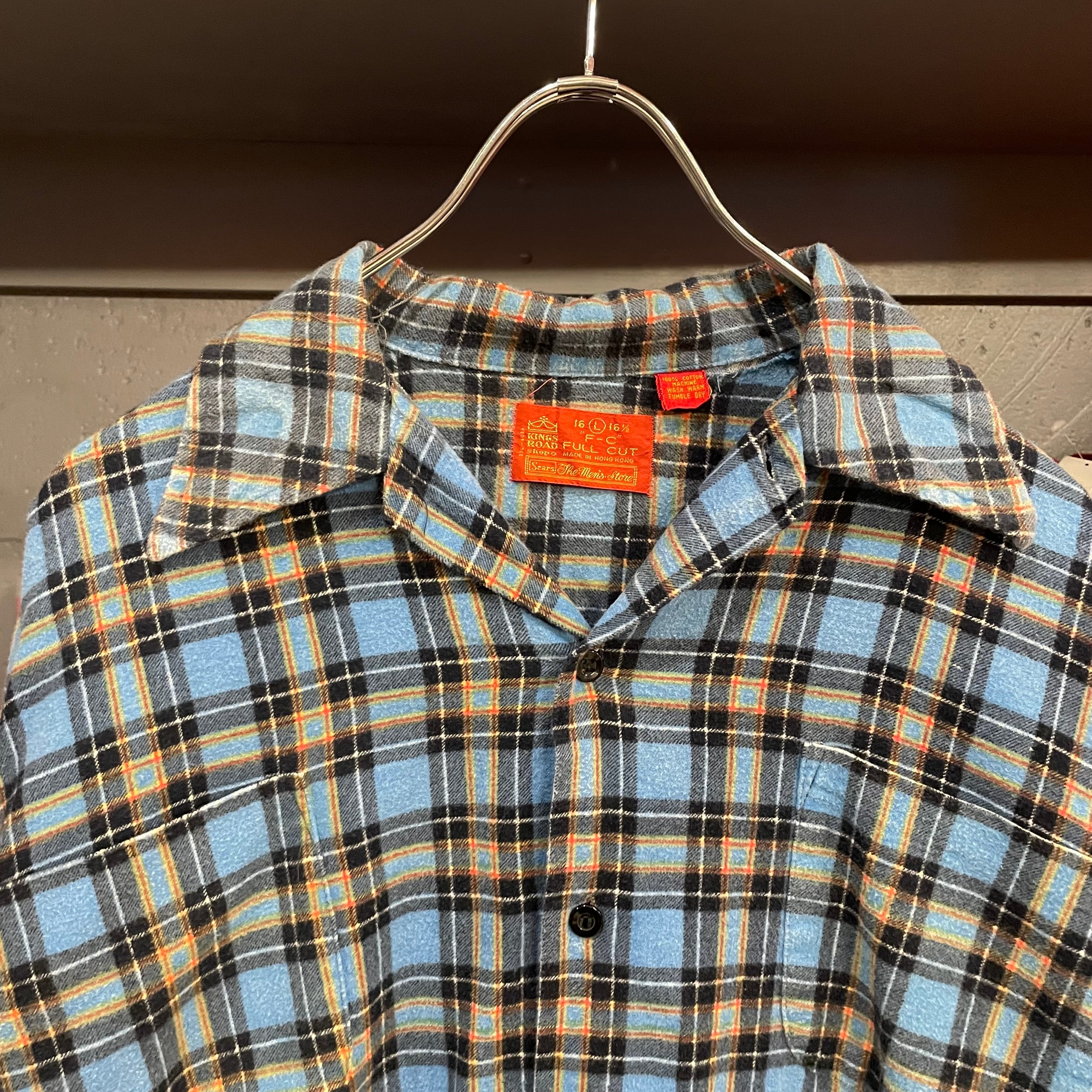 70s Sears L/S Open Collar Print Flannel Shirt