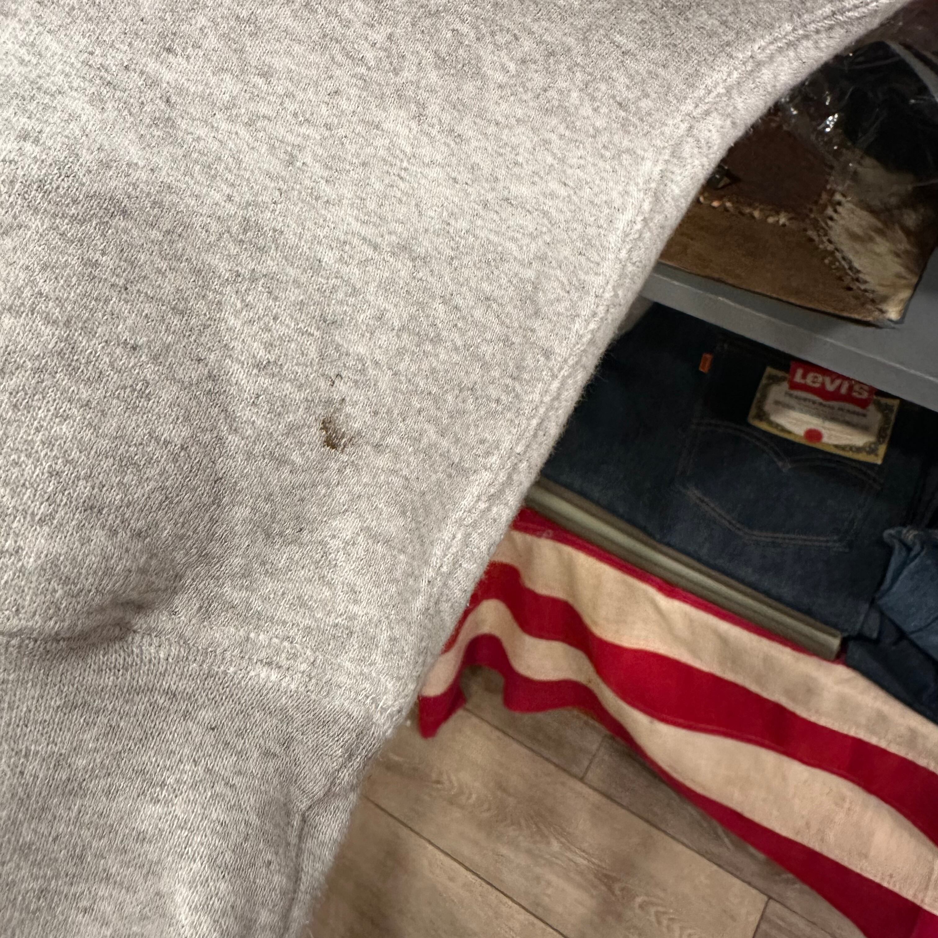 袖先に汚れあり。