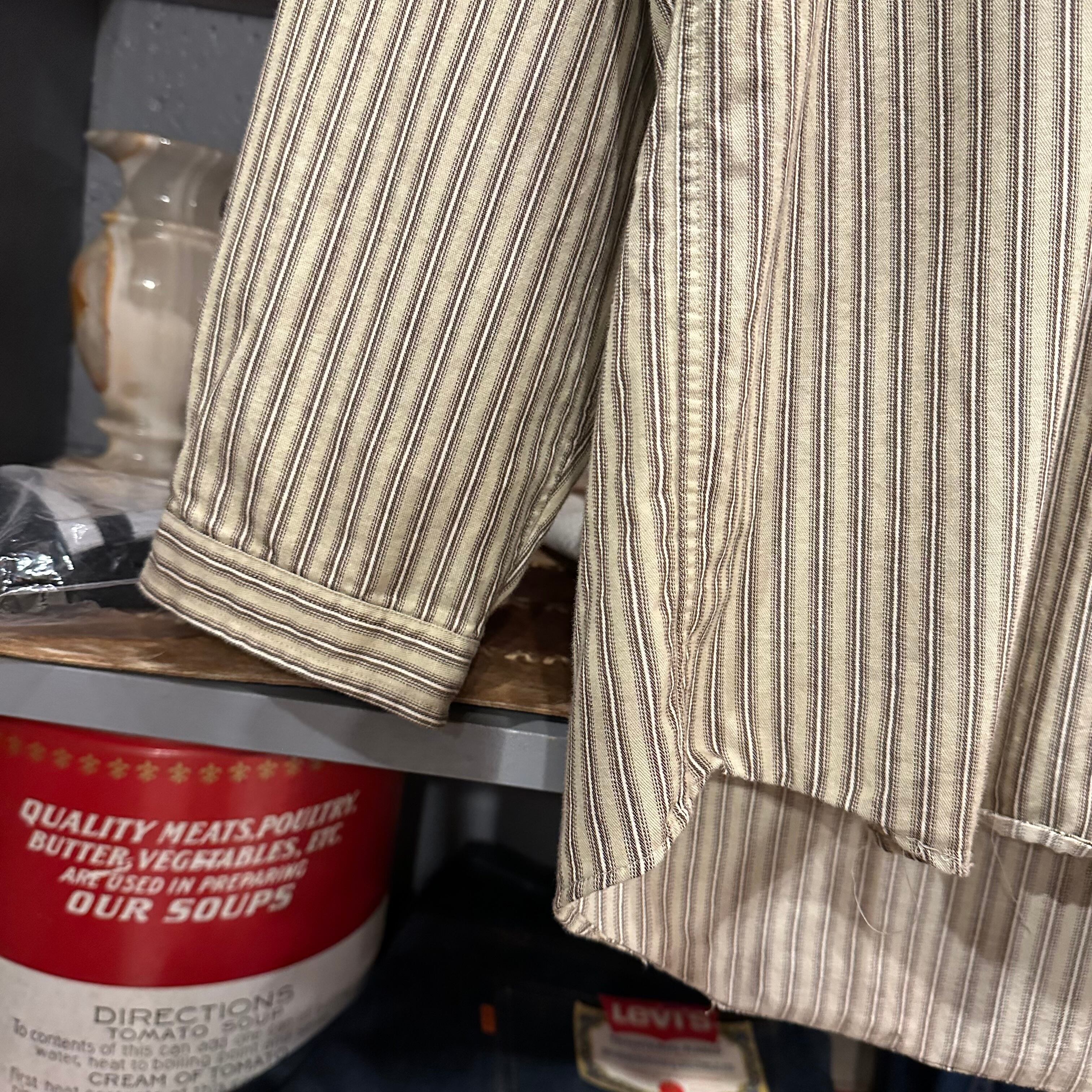 90s J.Crew Band Collar L/S Stripe Shirt