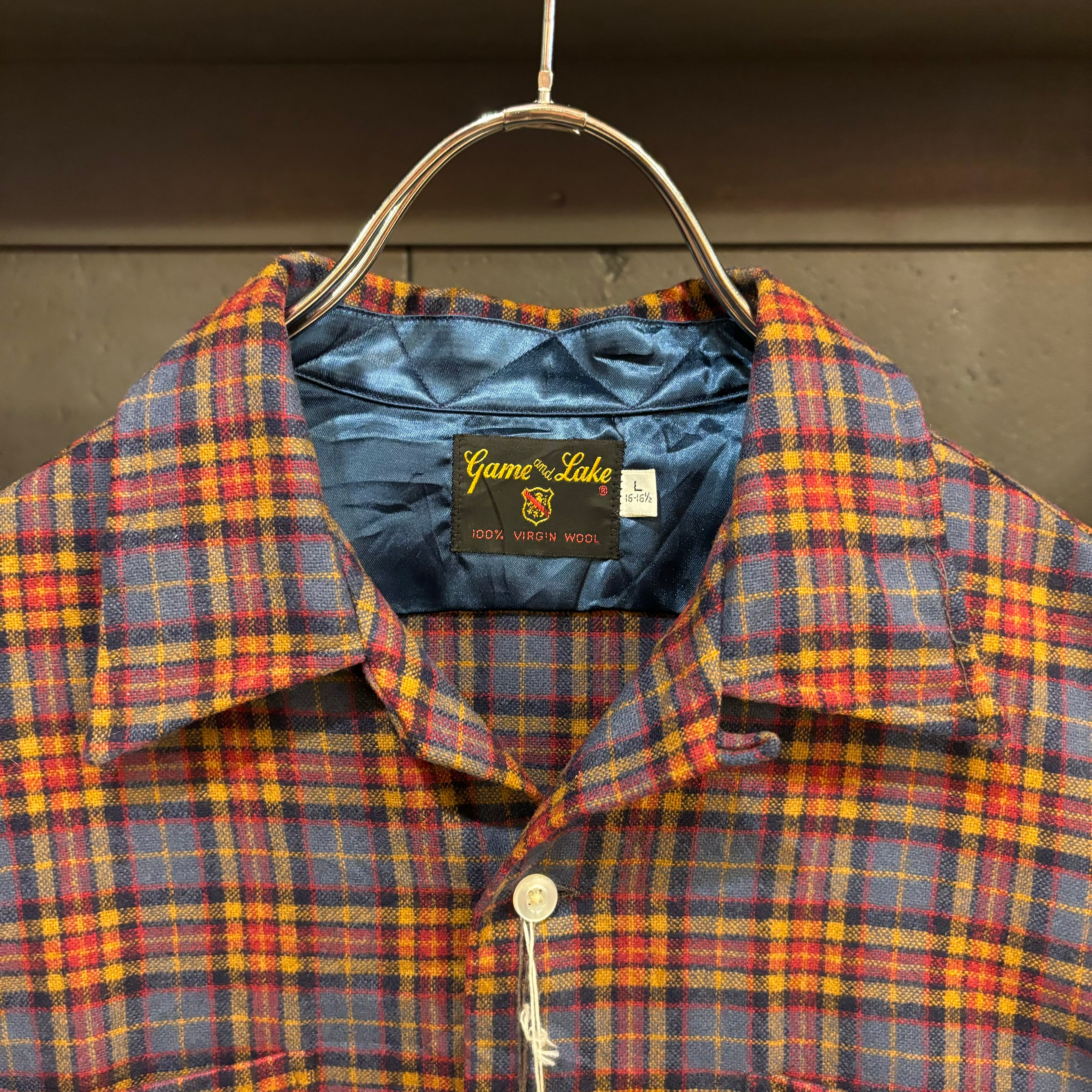 60s Game and Lake L/S Open Collar Wool Shirt Dead Stock