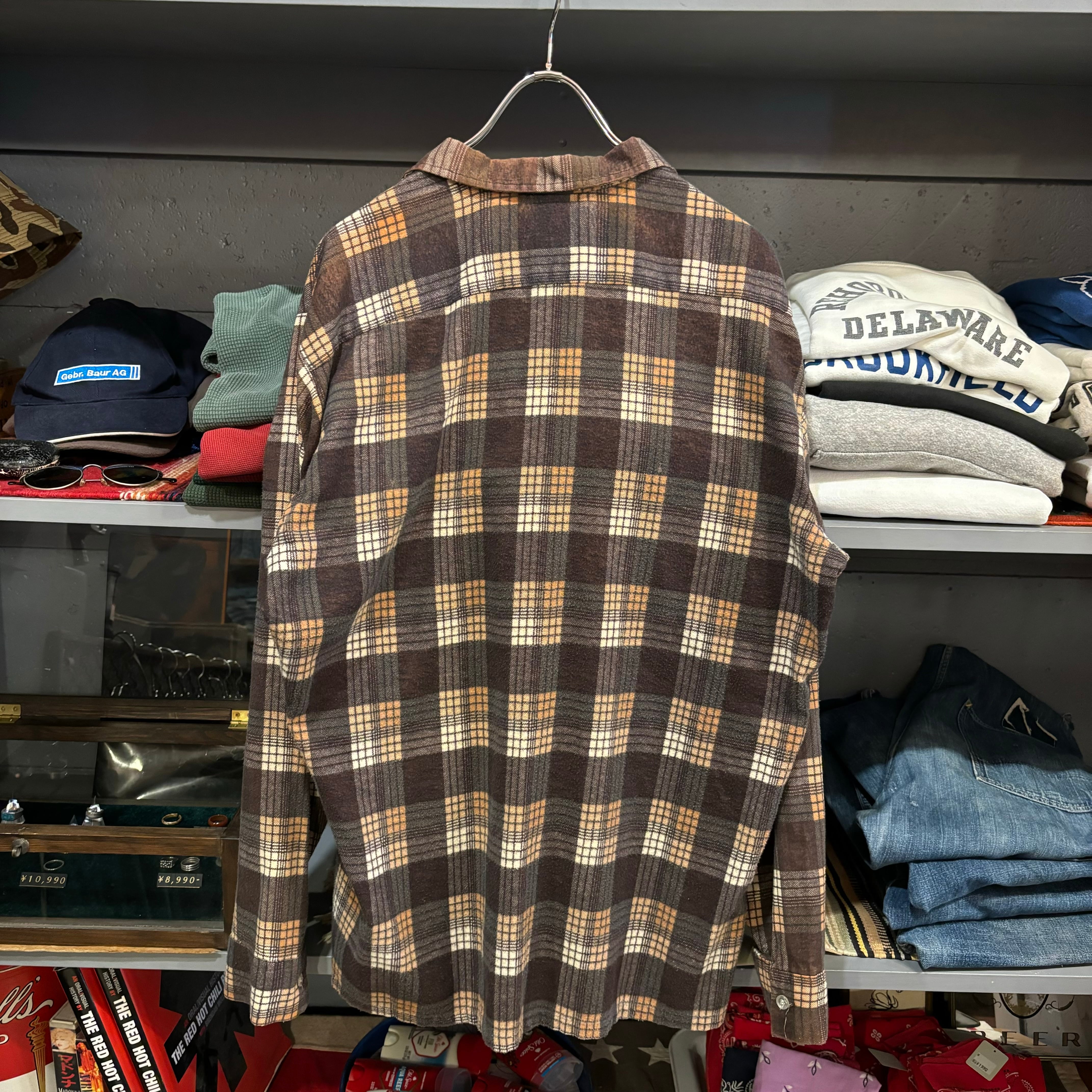 60s REDWOOD L/S Open Collar Print Flannel Shirt
